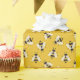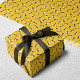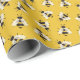 A pattern of yellow and black striped, illustrated, rustic bees swarm across this yellow wrapping paper. Use the customization further link to change the yellow background color to one of your choice.