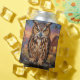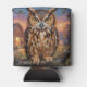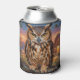 A owl themed cab cooler that features a striking Great Horned Owl, rendered in a rich, thick impasto oil painting style. The vibrant textures and warm sunset backdrop create a cozy, rustic atmosphere that is perfect for nature lovers and art enthusiasts alike.