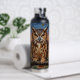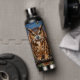 A owl themed water bottle that features a striking Great Horned Owl, rendered in a rich, thick impasto oil painting style. The vibrant textures and warm sunset backdrop create a cozy, rustic atmosphere that is perfect for nature lovers and art enthusiasts alike.