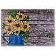 This is a picture of abstract yellow flowers in a blue water pitcher, Rustic impressionism blue vase summer daisy home accessories. Rustic western country daisy fashion accessories . Rustic daisy wedding favors.