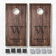 Rustic Industrial Wood Planks Family Name Monogram Cornhole Set