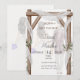 An elegant wedding invitation featuring a rustic wooden arch, white drapes, and a "Bismillah" header.