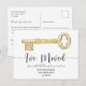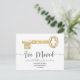 Let your friends and family know your new address with this rustic announcement postcard. This template features a vintage gold key on a white background. Fully customizable text, very simple to edit with your personal details.