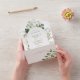 ALSO AVAILABLE WITH A QR CODE TO SCAN IN THE RSVP AREA OR WITH DINNER SELECTION OPTIONS. This design features a soft frame of ivy, ferns, and other greenery around a cream oval. Personalized All-In-One invitations are a unique combination of both a beautifully printed custom invitation with an easy to tear off perforated RSVP postcard. And they are so easy to use! You simply fold, then seal the back flap with the three included clear stickers, and mail. And when your guests receive your custom invite, they just tear the perforated RSVP Card off and drop it back in the mail to you!