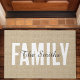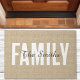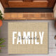 Rustic jute tan faux burlap "Family" custom monogrammed door mat. Add a touch of country cute to your entry way. Makes a great family keepsake. Click the customize it button to customize the typography with your own family name. Note: the burlap in this designs is a printed faux texture.