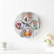 A keepsake wall clock features a wood texture with 4 round photos. Great gift idea for grandparents, yourself, or someone special. Customize the text. Message me if you need assistance or have any special requests.