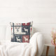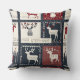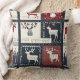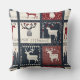 This throw pillow showcases a knitted patchwork pattern with woodland charm, featuring stylized deer, pine trees, and rustic motifs arranged in a block grid. Rendered in a festive palette of cream, dark blue, and red, it highlights the cozy look of woven stitches and traditional winter craftsmanship. Perfect for lovers of rustic farmhouse style, Nordic holiday designs, and vintage-inspired Christmas décor. A warm and timeless design that brings the spirit of winter forests into the festive season.