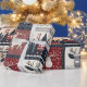 This wrapping paper showcases a knitted patchwork pattern with woodland charm, featuring stylized deer, pine trees, and rustic motifs arranged in a block grid. Rendered in a festive palette of cream, dark blue, and red, it highlights the cozy look of woven stitches and traditional winter craftsmanship. Perfect for lovers of rustic farmhouse style, Nordic holiday designs, and vintage-inspired Christmas décor. A warm and timeless design that brings the spirit of winter forests into the festive season.