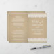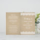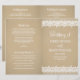 Delicate white lace trim frames a warm kraft background on this rustic ceremony program. "Wedding Of" appears in elegant typography, framing your names and wedding details for a romantic country-inspired design, with a coordinating lace-trimmed backing. Inside pages are fully customizable for your bridal party, ceremony order, and a personal thank you message on the back cover. Programs are printed on text-weight paper and arrive flat, requiring a simple center fold.