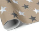 Rustic Kraft Black Silver Stars Holiday Wrapping Paper