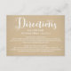 A coordinating directions enclosure card featuring white calligraphy "Directions" script with detailed driving instructions on a warm kraft paper background. The design accommodates multiple routes with ample space for turn-by-turn details in a clean, readable layout. All text and directions are fully editable.