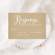 A coordinating RSVP card featuring a white calligraphy "Response" header with reply date, guest name line, and attendance options on a warm kraft paper background. This card-format variation offers the same romantic rustic design with guest count tracking. All text including the reply date is fully editable.