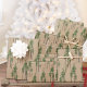 A woodland forest Christmas holiday wrapping paper featuring illustrated green Eastern pine trees in a forest pattern on a brown Kraft color wrapping paper.