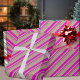 A rustic kraft colored holiday wrapping paper featuring hot pink colored candy cane stripes.