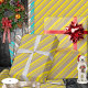 A rustic kraft colored holiday wrapping paper featuring lemon yellow colored candy cane stripes.