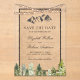 Amaze your guests with this elegant forest theme wedding save the date featuring evergreen pine trees and rocky mountains with eye-catching typography.