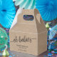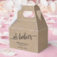 This trendy favor box features a faux kraft background and script lettering with swashes. Use the template form to add your information. The Customize feature can be used to change the font and the text layout. You can also add text to the other side of the favor box.