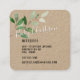 A professional looking modern kraft paper square business card with your name on the front in a handwritten raised script, with a watercolor painted greenery leafy stem, and all your details on the back in an easy to read block text.