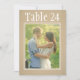 Elegant custom wedding table cards can be personalized with an engagement photo of the bride and groom. Design features white table number text on a rustic kraft brown paper background. To customize: type in the table number, click "change" by the default photo to upload your own photo, and add that individual table number card to your shopping cart. Repeat for all of the table numbers that you need.