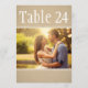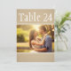 Warm kraft texture and flowing calligraphy frame your favorite photo on this rustic wedding table number card. The natural, earthy design pairs perfectly with barn, vineyard, and outdoor reception settings. To customize, type in the table number, click Change by the default photo to upload your own, and add that individual table number card to your shopping cart. Repeat for all of the table numbers that you need.