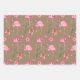 Rustic Kraft Pink Flamingo Christmas Holiday Wrapping Paper Sheets