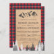 Rustic Kraft Red Buffalo Plaid Mountain Wedding Invitation