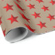 A rustic kraft wrapping paper for the Christmas holiday featuring red stars in a repeat pattern on a warm kraft paper.