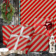 A rustic kraft colored holiday wrapping paper featuring red wide stripes.