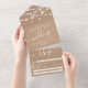 Rustic kraft string lights initials script wedding all in one invitation