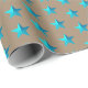 Rustic Kraft Turquoise Blue Stars Wrapping Paper