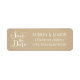 Wedding return address labels feature "Save the Date" in white script and a background with a rustic kraft brown paper textured appearance.