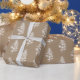 Kraft Christmas wrapping paper for the holidays featuring a white woodland spruce tree in a repeat pattern on kraft colored wrapping paper.