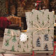 A Kraft Christmas holiday gift wrapping paper featuring watercolour-painted spruce trees and reindeers in a woodland forest pattern.
