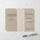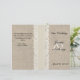 This custom wedding program is the perfect combination of traditional and trendy. The burlap-look background is perfect for a rustic or vintage themed wedding and the lace-look accent adds a classic, romantic touch. Coordinates with full collection of matching IVORY Save the Dates, RSVP cards, custom postage, and more! Email me for custom colors! NOTE - This is a high-quality image of burlap, lace, & ribbon; this invitation does not contain actual burlap, lace, or ribbon. Thanks!