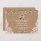 Unique card design featuring string lights, old lantern with marsala flowers bouquet on a burlap with lace corners background. Use Customize tool to add your info. See, also, my Vintage Lace Collection.