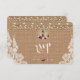 Unique card design featuring string lights, old lantern with marsala flowers bouquet on a burlap with lace corners background. Use Customize tool to add your info. See, also, my Vintage Lace Collection.