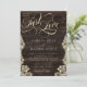 Rustic Lace Dark Wood Just Love Script Wedding Invitation