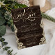 Rustic Lace Dark Wood Nothing Fancy Just Love Script Wedding Invitation. Embrace rustic charm with this stunning 'Nothing Fancy Just Love' wedding invitation. The design showcases a deep, dark wood grain complemented by delicate, Ivory lace appliques on the sides. The centerpiece is the beautiful calligraphy script typography adding a touch of romantic elegance to the rustic backdrop. This invitation is sure to impress your guests and reflect the beautiful simplicity of your special day.