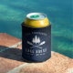Personalize your family lake house with beautiful, rustic themed, can coolers, featuring your family name and "Lake House" or other desired text along with its established date and location. This custom, unique design features a white silhouette of crossed boat oars and pine trees on a print of wood planks in rich blue colors. Perfect for company named vacation rental homes and cabins where a rustic, outdoor nature theme is needed. To see more designs like this, feel free to visit my store here at "Zazzle.com/Rustic_Charm". Thanks.