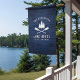 Rustic Lake House Boat Oars Trees Blue Wood Print Flag