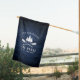 A beautiful, rustic themed house flag, featuring your family name and "Lake House" or other desired text along with its established date and location. This custom, unique design features a white silhouette of crossed boat oars and pine trees on a print of wood planks in rich blue colors. To see more designs like this, feel free to visit my store here at "Zazzle.com/Rustic_Charm". Thanks.