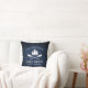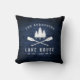 Beautiful, rustic themed throw pillow cushions, featuring your family name and "Lake House" or other desired text along with its established date and location. This custom, unique design features a white silhouette of crossed boat oars and pine trees on a print of wood planks in rich blue colors. To see more designs like this, feel free to visit my store here at "Zazzle.com/Rustic_Charm". Thanks.
