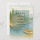 Announce your wedding with this rustic watercolor of a lakeside lodge and pine-covered mountains. Perfect for romantic alpine mountain destination ceremonies.