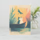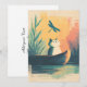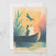 Vintage curious cat in a canoe, drifting across a rustic lake as a dragonfly dances nearby.