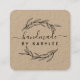 Rustic Laurel Leaf Handmade Script Square Business Card