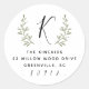 Custom return address sticker label personalized with your family monogram and address featuring hand drawn laurel branches with berry accents and modern calligraphy script.