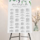 This rustic lavender alphabetical seating chart foam board is perfect for a simple and elegant outdoor wedding. This sign can be used to organize your guests alphabetically or by table number. The floral design features watercolor eucalyptus leaves and greenery with sprigs of purple wildflowers. This wedding sign includes enough room for up to about 120 guests. Make room for more (or less) guests by clicking the "customize" button and decrease or increase the size of the font. In addition to the placement of each guest, personalize this sign with the names of the bride and groom and the wedding date.