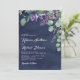 Rustic Lavender and Eucalyptus Navy Blue Wedding Invitation