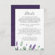 This rustic lavender details enclosure card is perfect for a simple and elegant outdoor wedding. The floral design features watercolor eucalyptus leaves and greenery with sprigs of purple wildflowers.