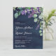 Rustic Lavender Eucalyptus QR Code Navy Wedding Invitation